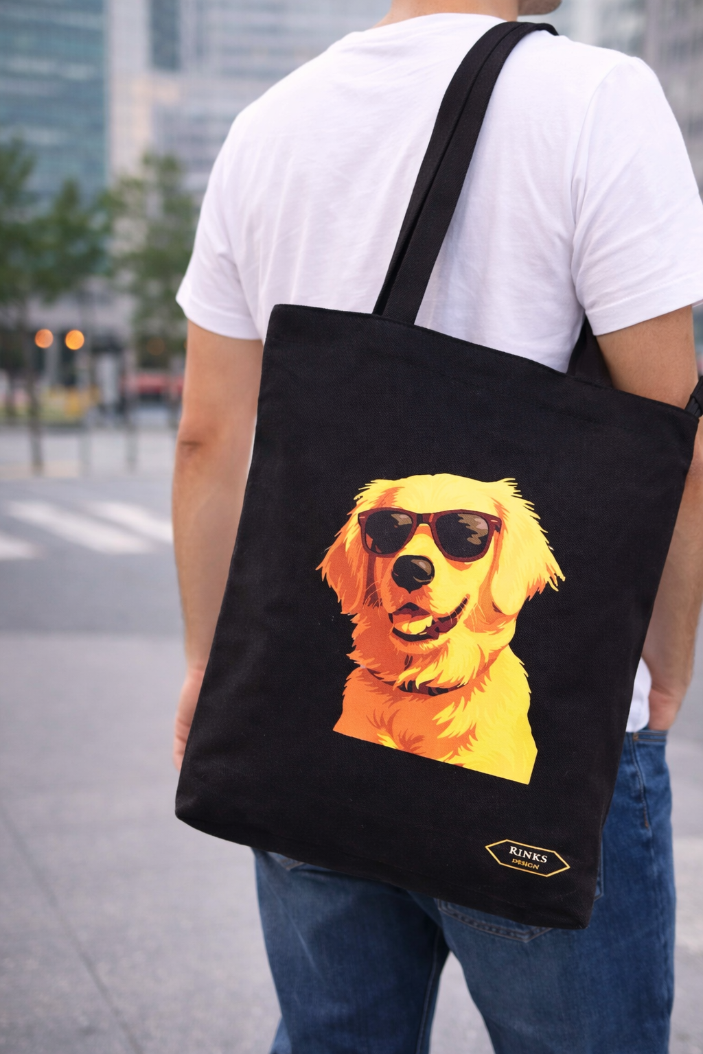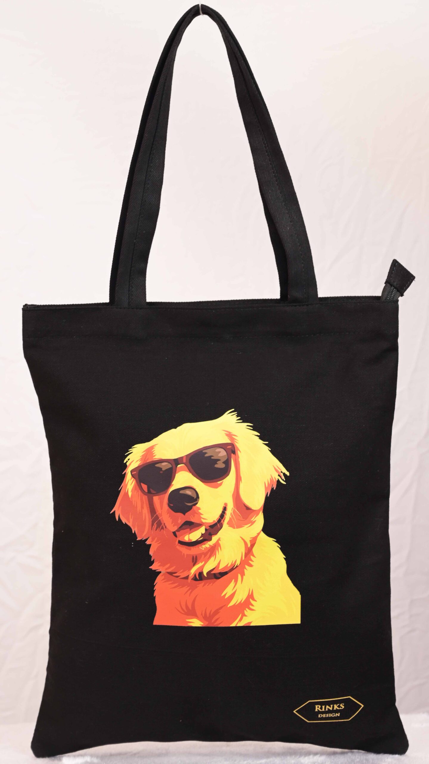 This exclusive single product features a creative and trendy dog print on a premium black canvas Jhola Tote Bag designed for daily durability. The bag comes in a spacious 38×40 cm size making it perfect for both men and women to carry books, electronics, or shopping items with ease. Crafted from high-quality canvas material, this lightweight unisex Jhola Tote offers a unique artistic look that blends traditional comfort with modern style for any casual or professional setting.