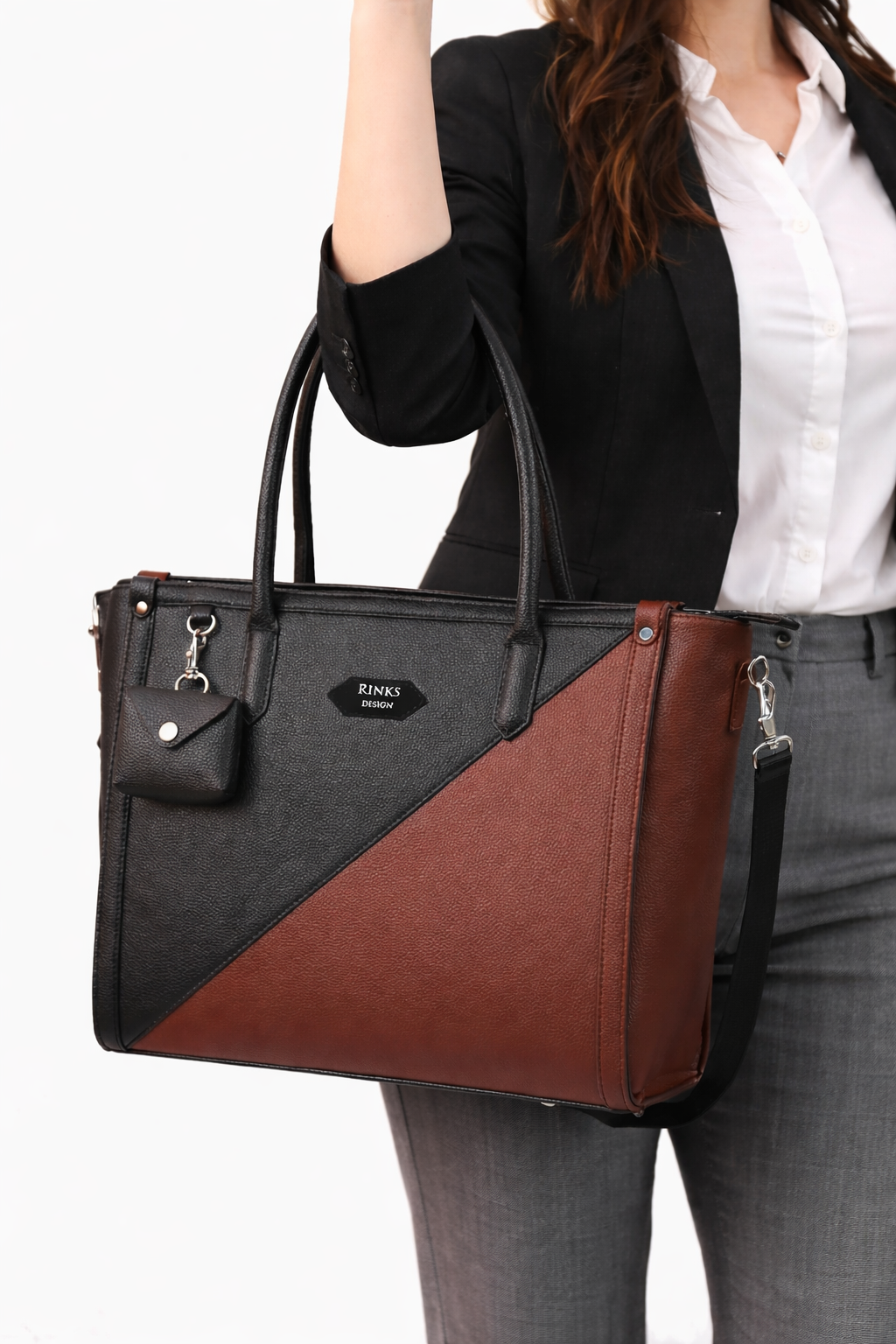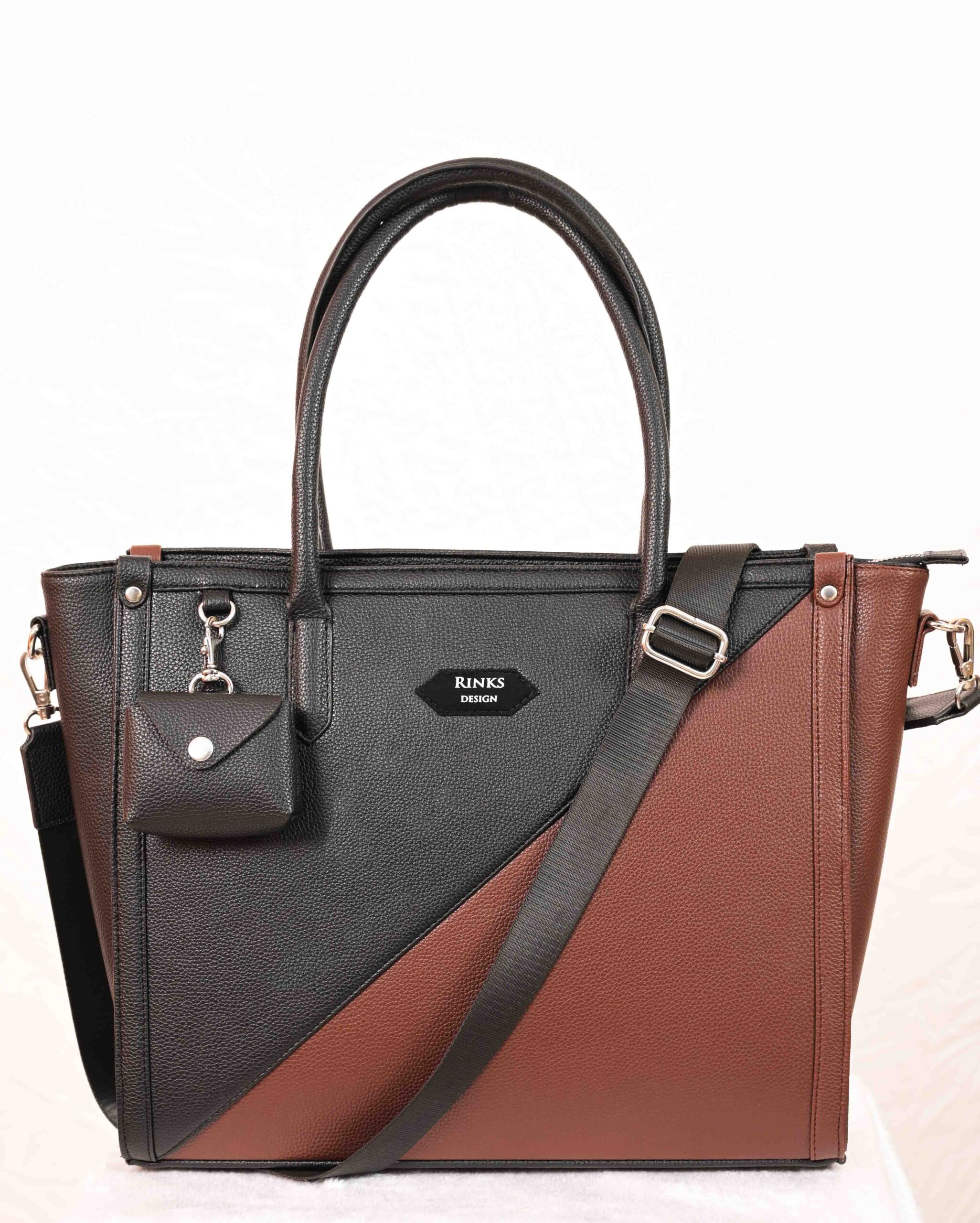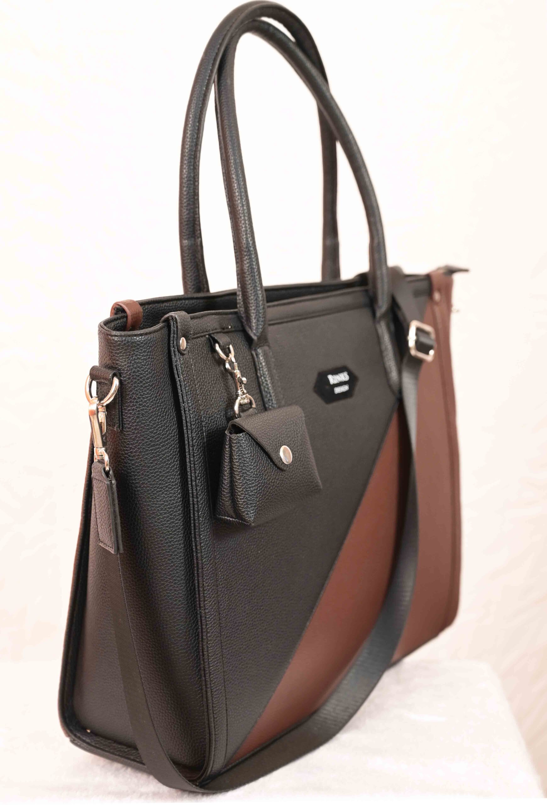 Step into your workspace with unparalleled sophistication with the Fable Elite Executive Tote. Meticulously handcrafted from 100% premium vegan leather, this dual-tone masterpiece in classic Brown and Black is designed for the modern professional who values both ethics and elegance. This spacious laptop bag doesn’t just look good—it’s built for high-performance organization, featuring a secure mobile pocket, a dedicated key holder, and a convenient internal bottle strap. Whether you’re heading to a boardroom meeting or a casual business lunch, you can carry it by the sturdy top handles or attach the adjustable long strap for a comfortable crossbody fit. Sleek, structured, and incredibly durable, it’s the ultimate statement piece for your work wardrobe.