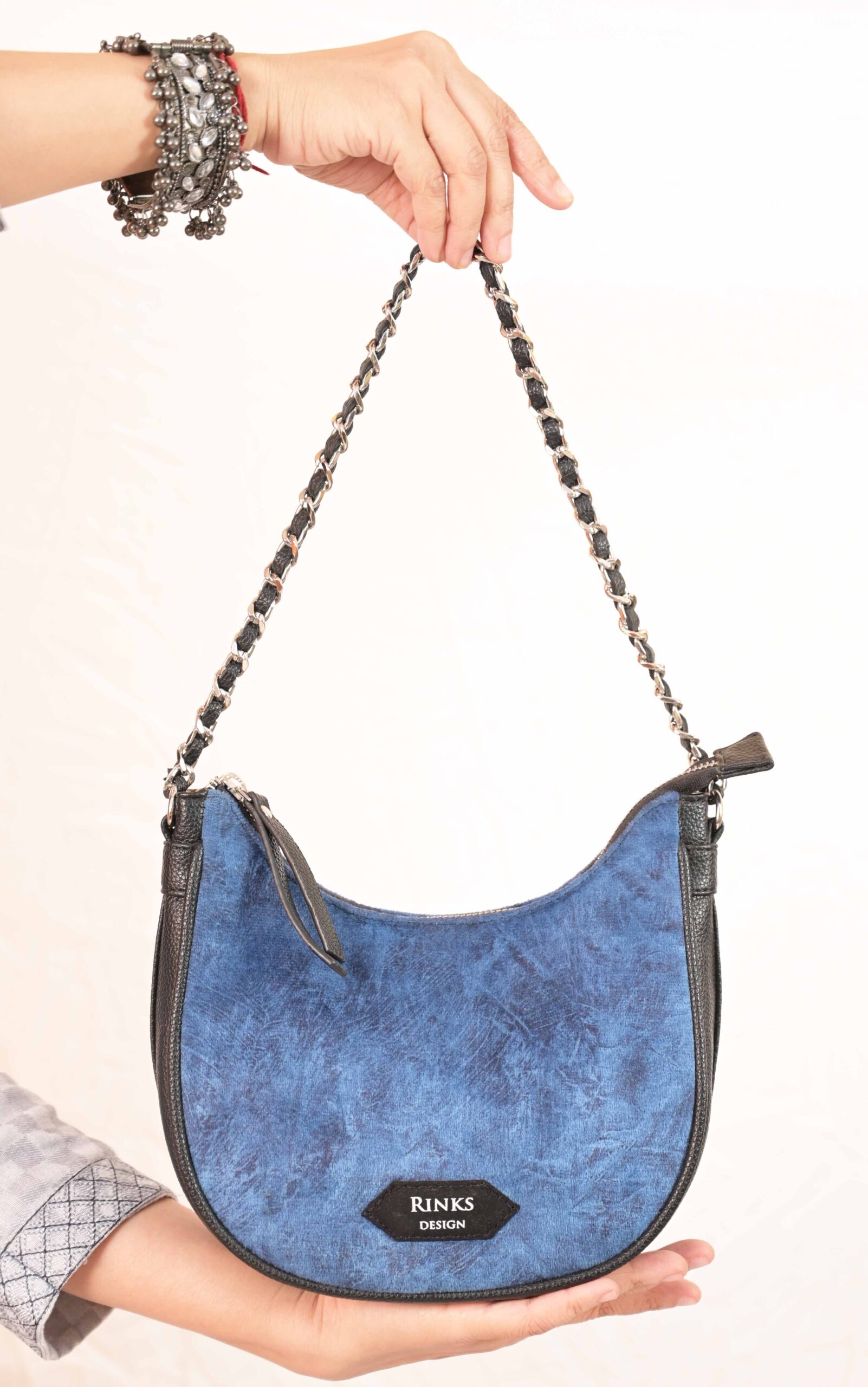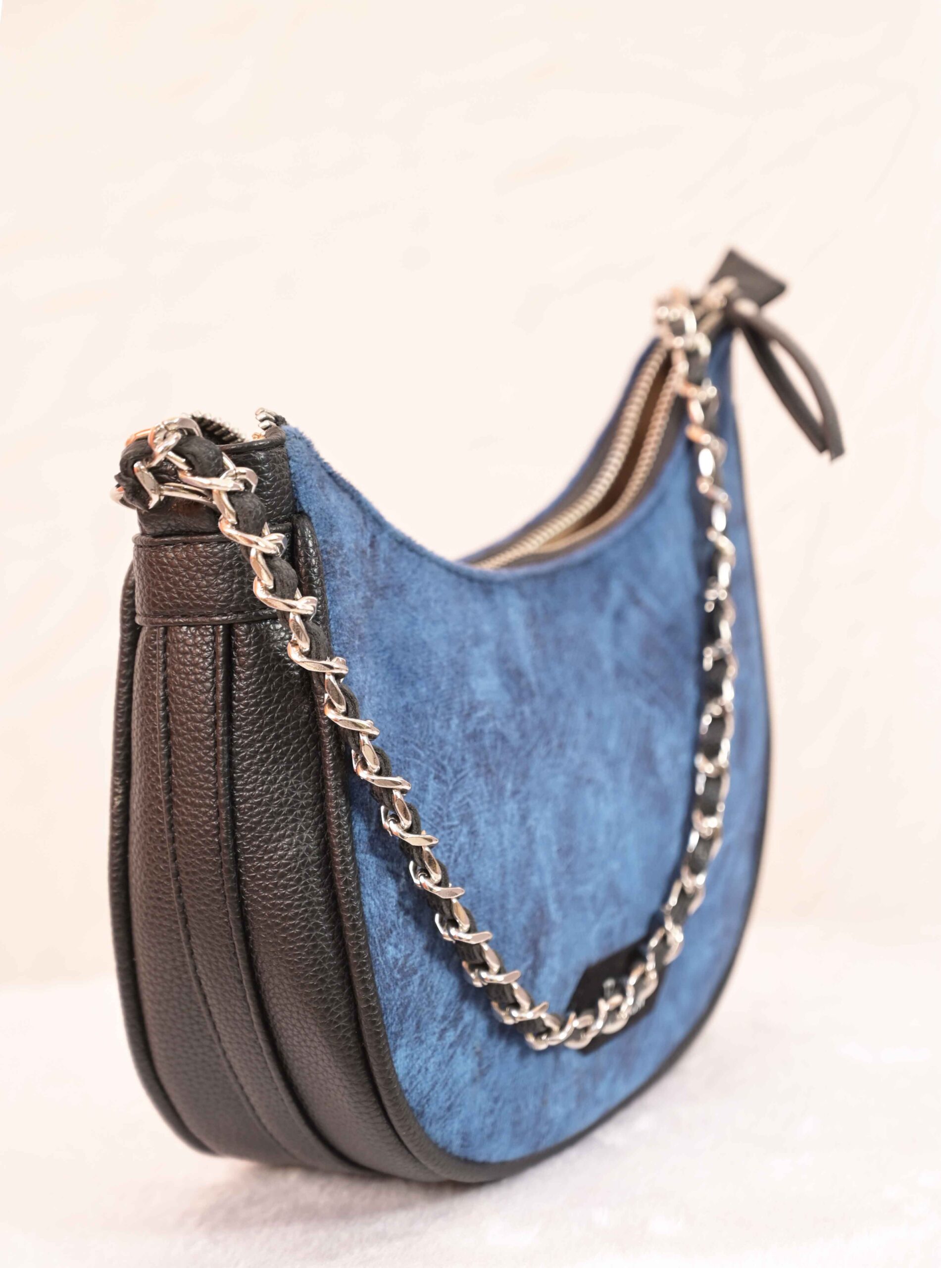 Unique Handle: High-fashion Silver-finish Metal Chain Handle interwoven with vegan leather for style and comfort.